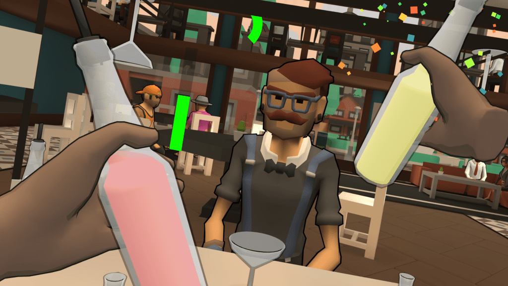 No need to limit it to an hour! 🍹 Happy Hour Hero is a flow-state VR bartending game where players compete to be the best bartender in town. Pour shots, mix cocktails, and manage beer kegs to make sure customers are appropriately merry. Perform bottle tricks, nail the bullseye with darts, and sling spirits with flair to keep ’em entertained. Mess up and leave a sour taste too many times? You’re out..!